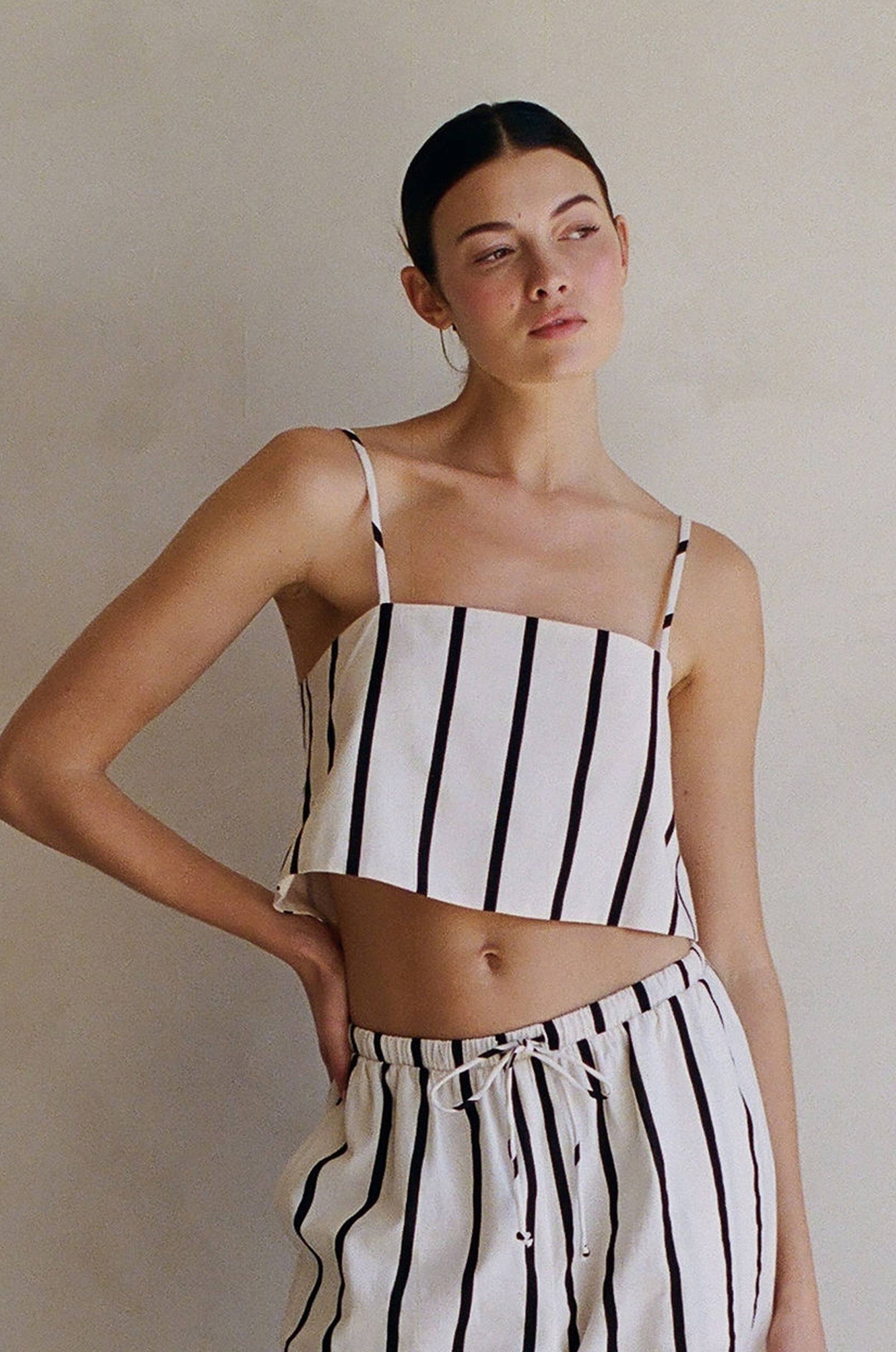 Woven Cotton Linen Strap Shoulder Square Neck Crop Top with Cotton Lining