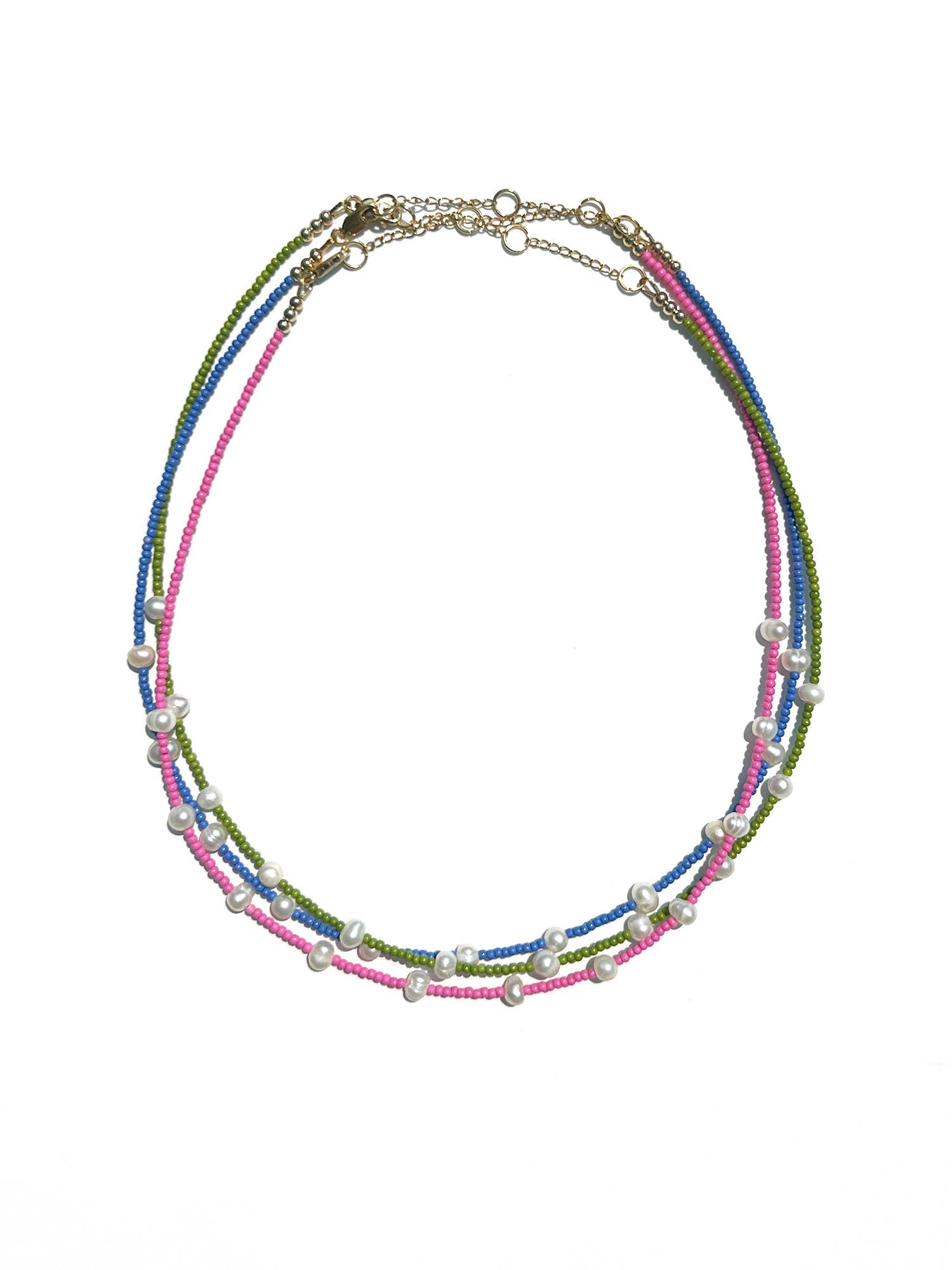 Bailey Handmade Colorful Pearl Seed Bead Necklace Gold Fill