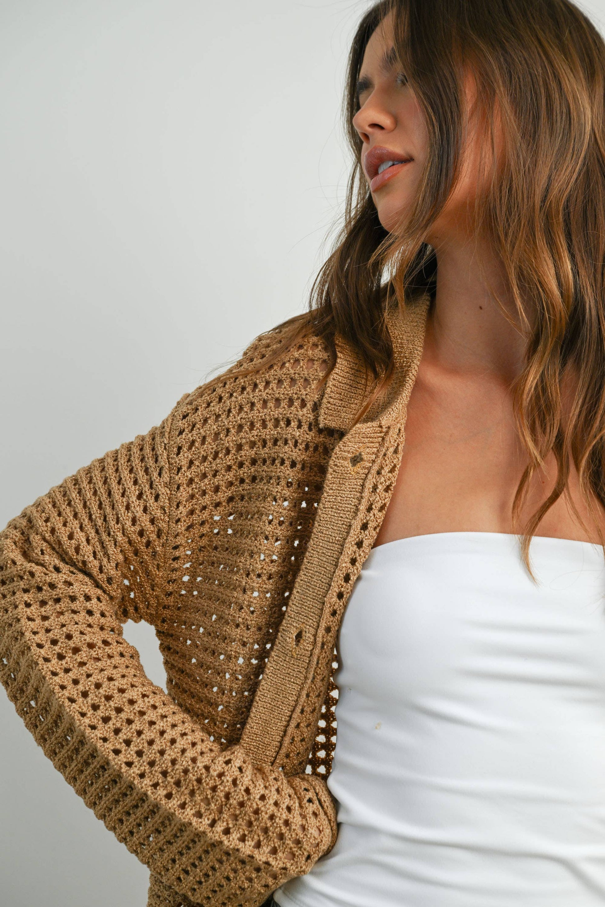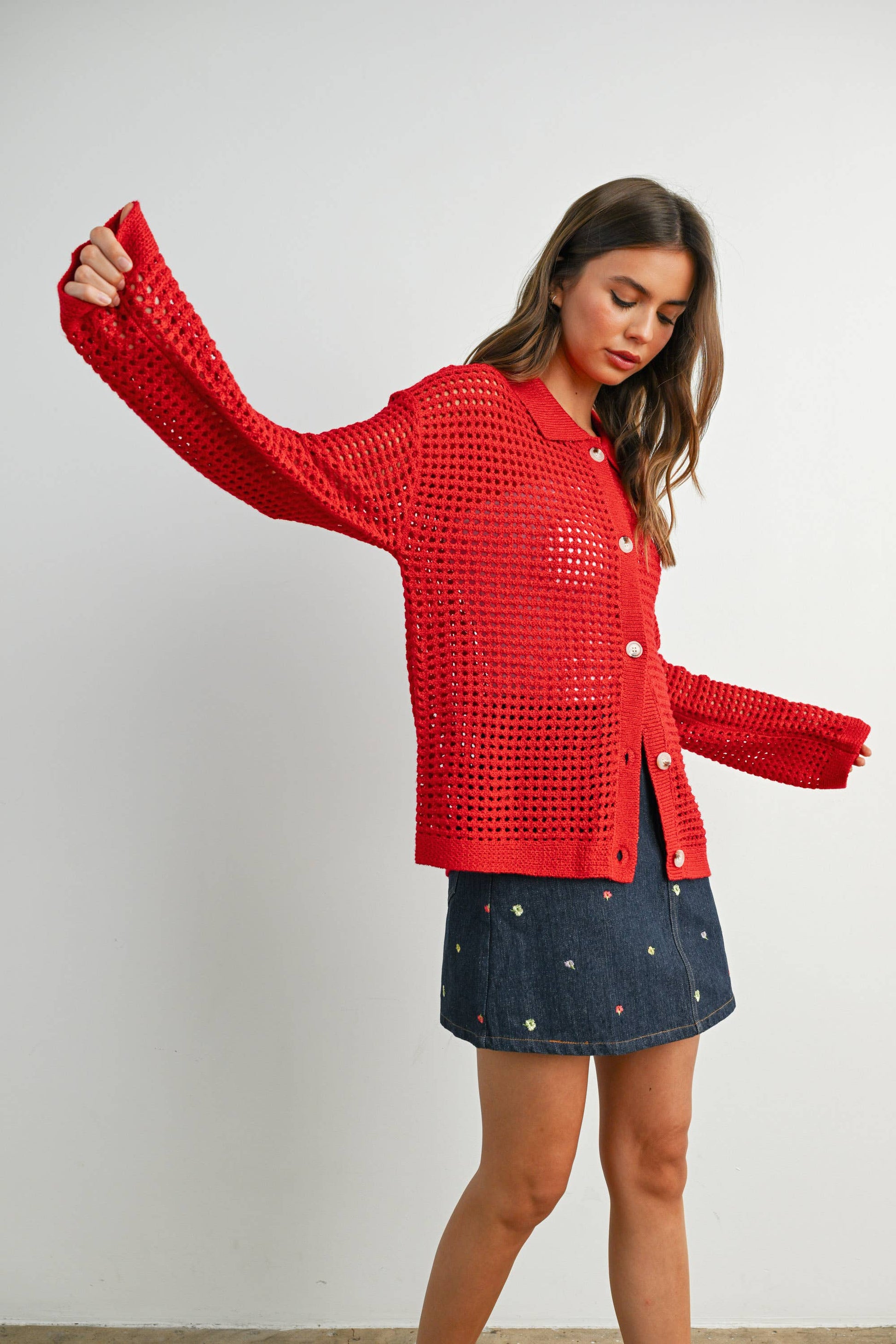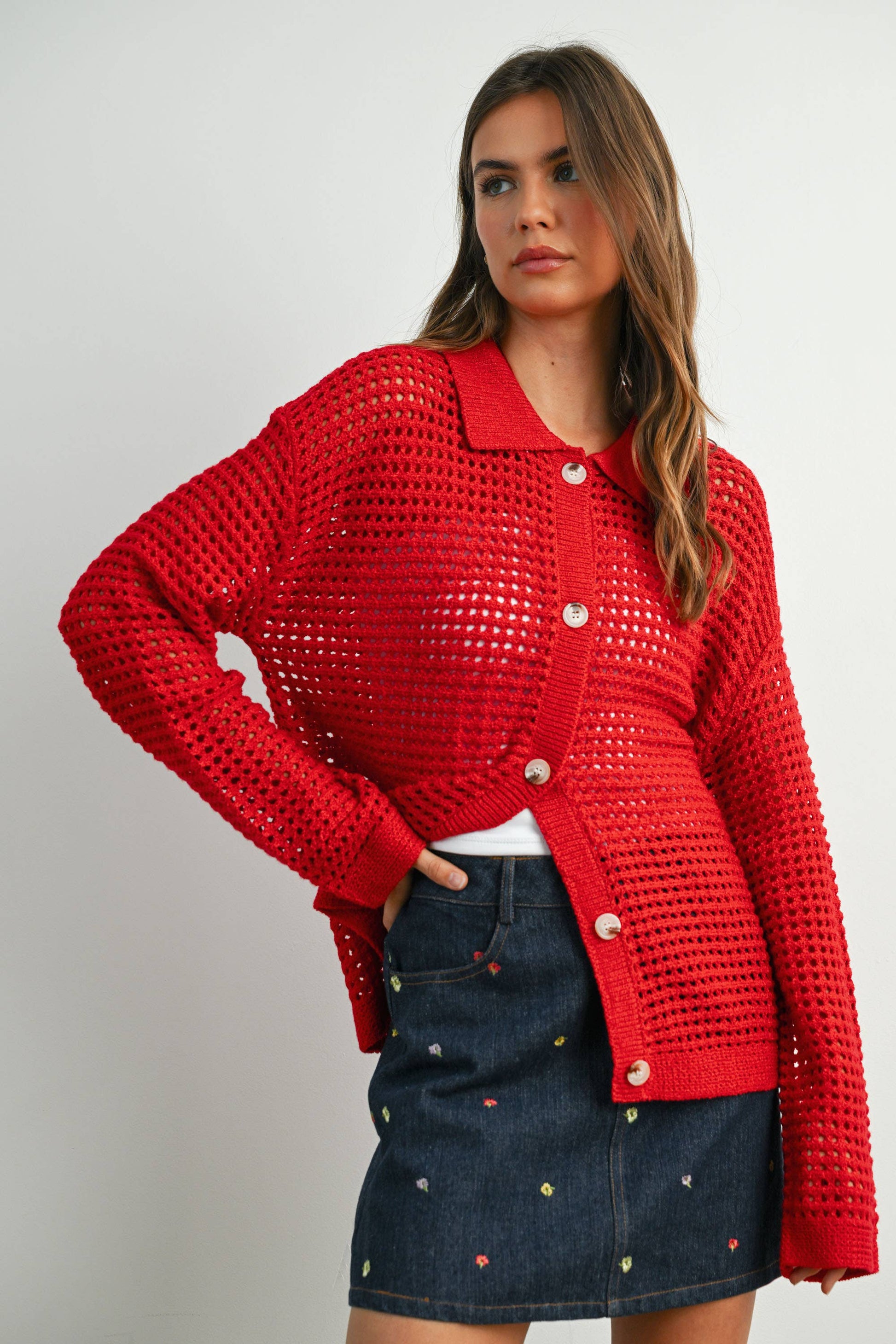 Open Stitch Crochet Collar Cardigan, the perfect blend of style and comfort for any occasion.
