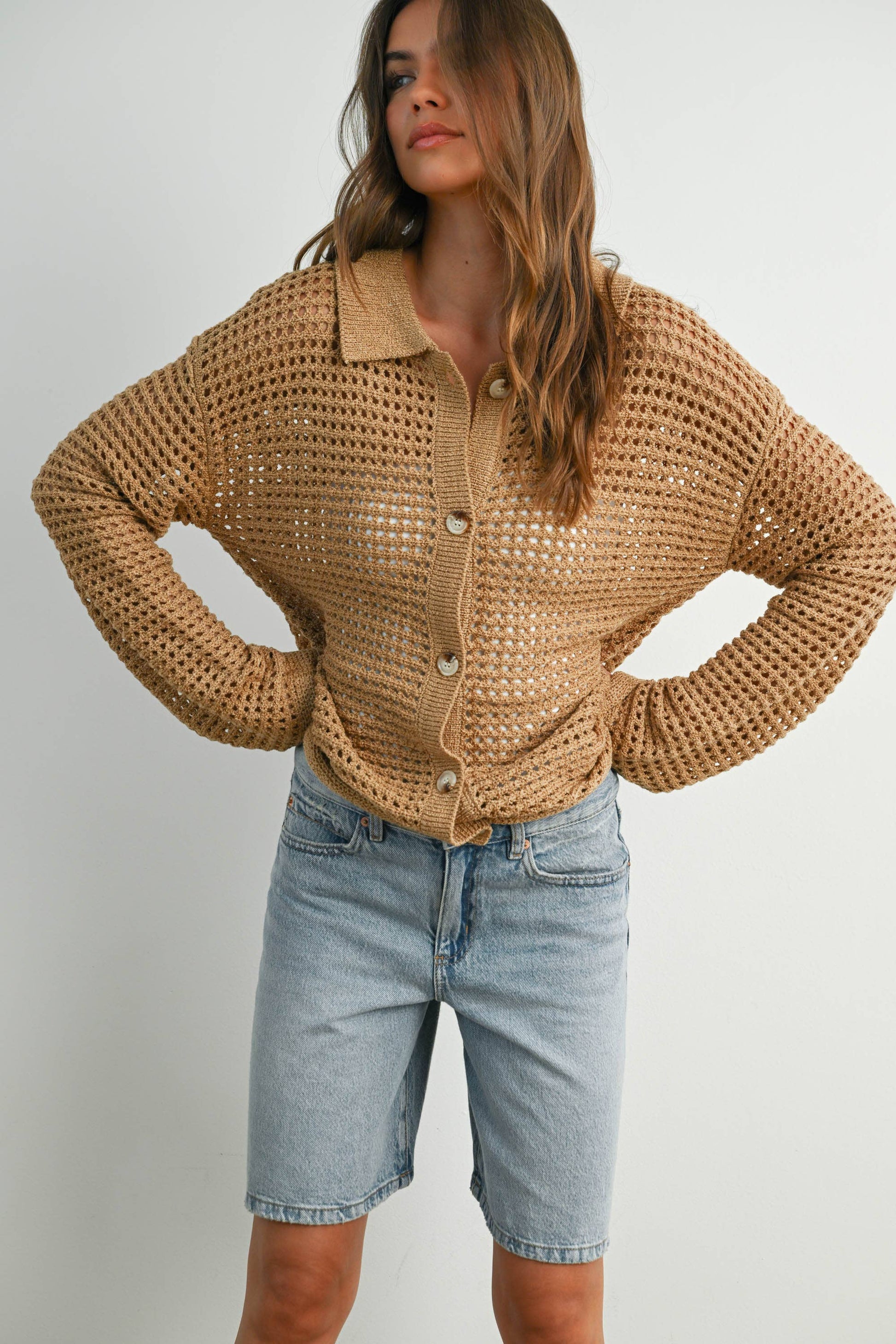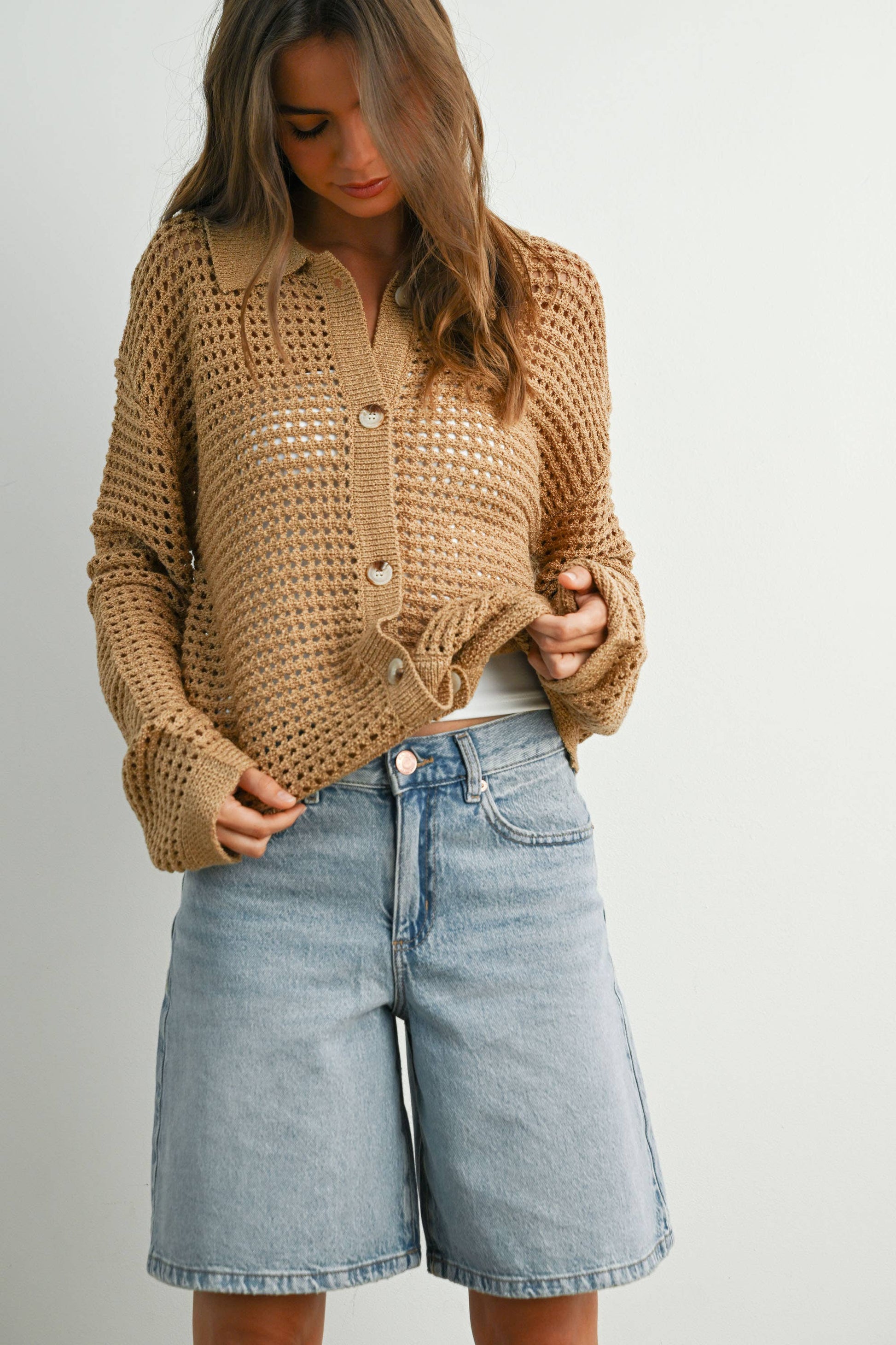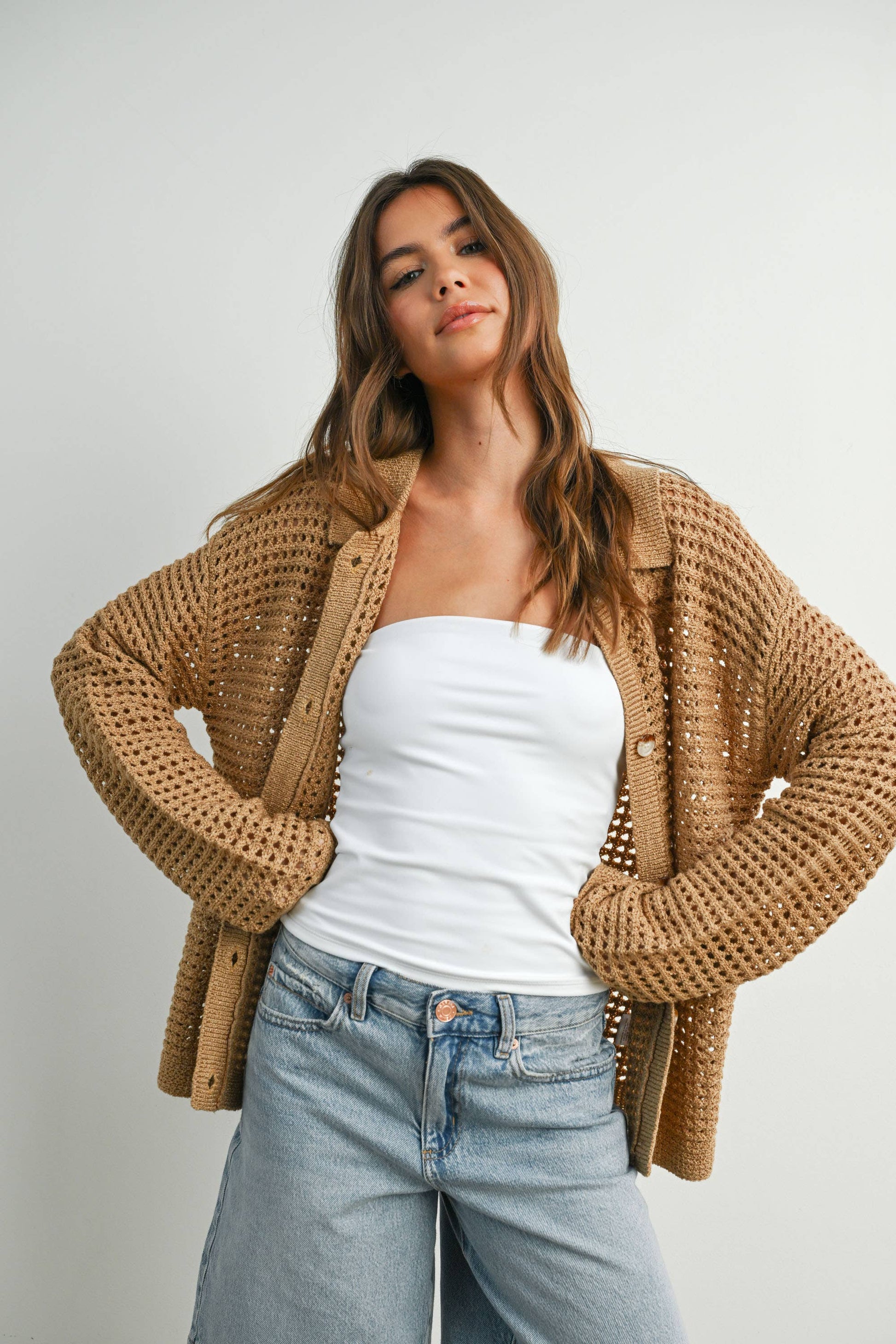 Open Stitch Crochet Collar Cardigan, the perfect blend of style and comfort for any occasion.