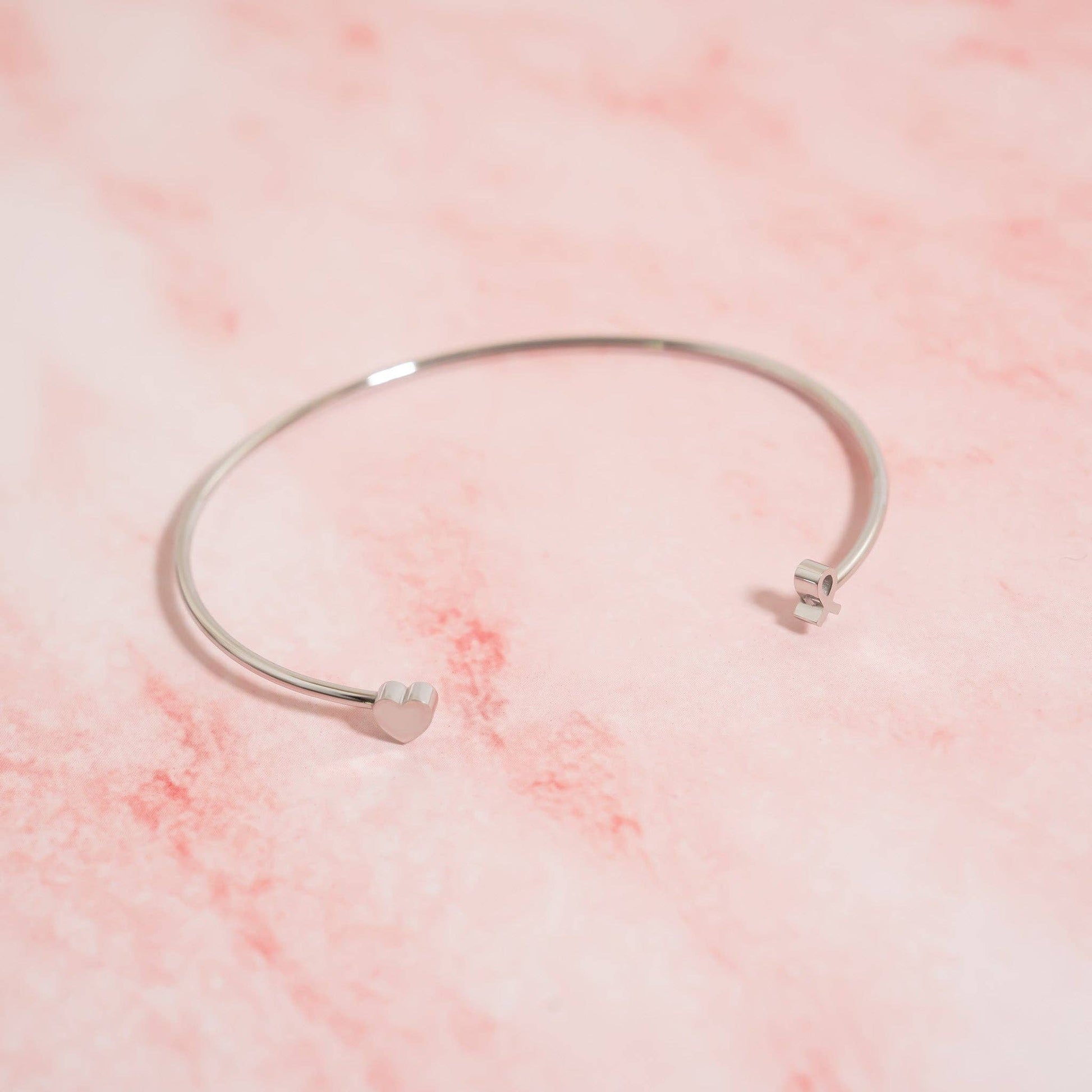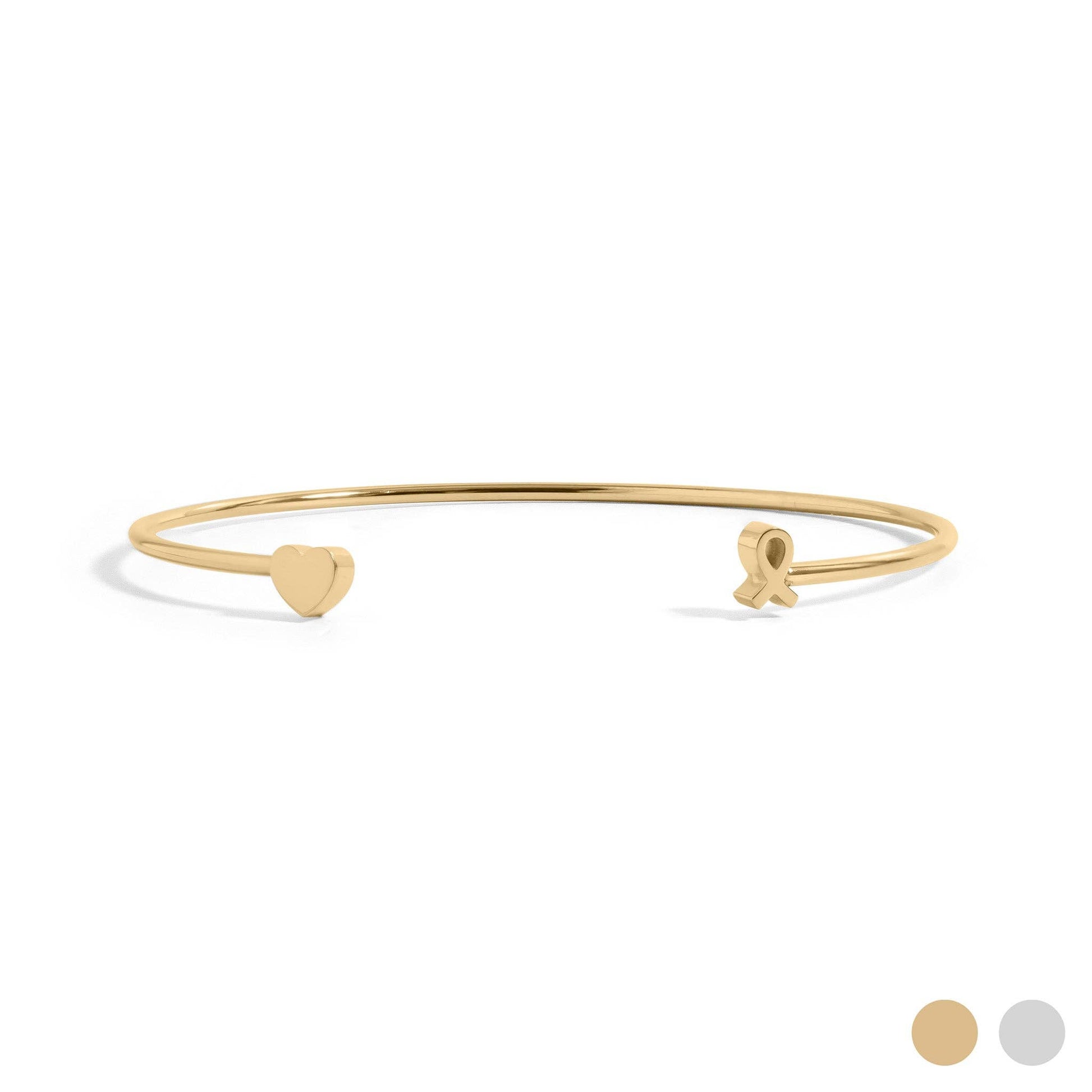 Breast Cancer Awareness Women’s Adjustable Cuff Bracelet – Support in Style Show your support with this meaningful Breast Cancer Awareness Cuff Bracelet. Crafted from polished stainless steel, this adjustable cuff features a sleek, feminine design that’s both comfortable and durable. Featuring a ribbon symbol and heart symbol on each end of the cuff.
