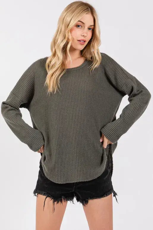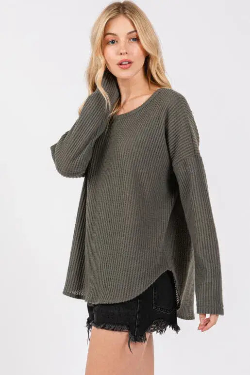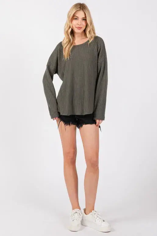 Brushed Waffle Long Sleeve Top