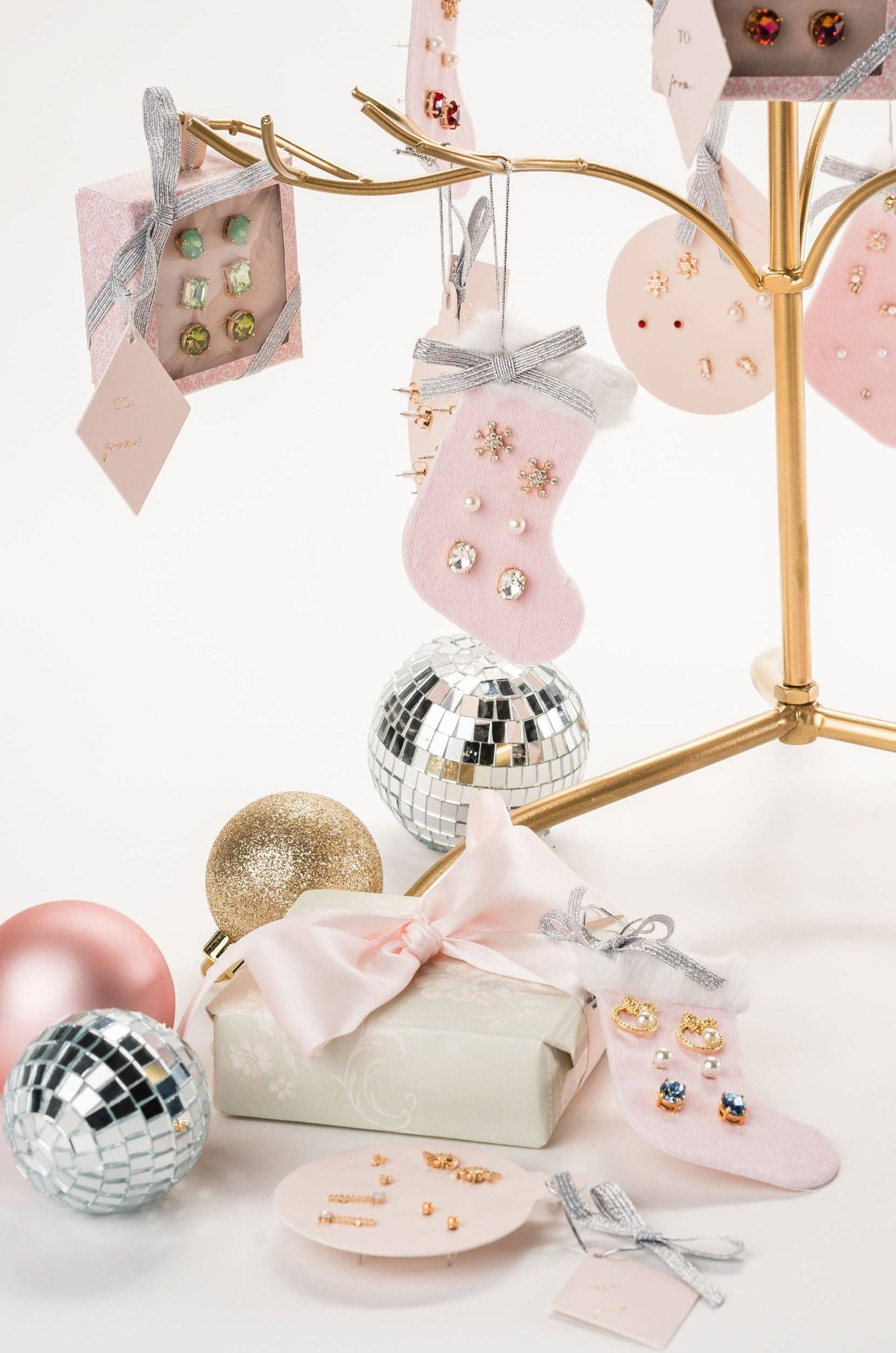 New! Give the gift of sparkle with our collection of stunning stocking stuffers. Spruce up your holiday dressing and gifting with the Clara Stocking Post Trio. These precious posts add a festive touch to any outfit, making them the perfect accessory for all your holiday events. (And they make great gifts too!) The Details: * Crystal Rhinestones * Approx. 0.5" Earrings * Gold-plated Brass * Lead and Nickel-free