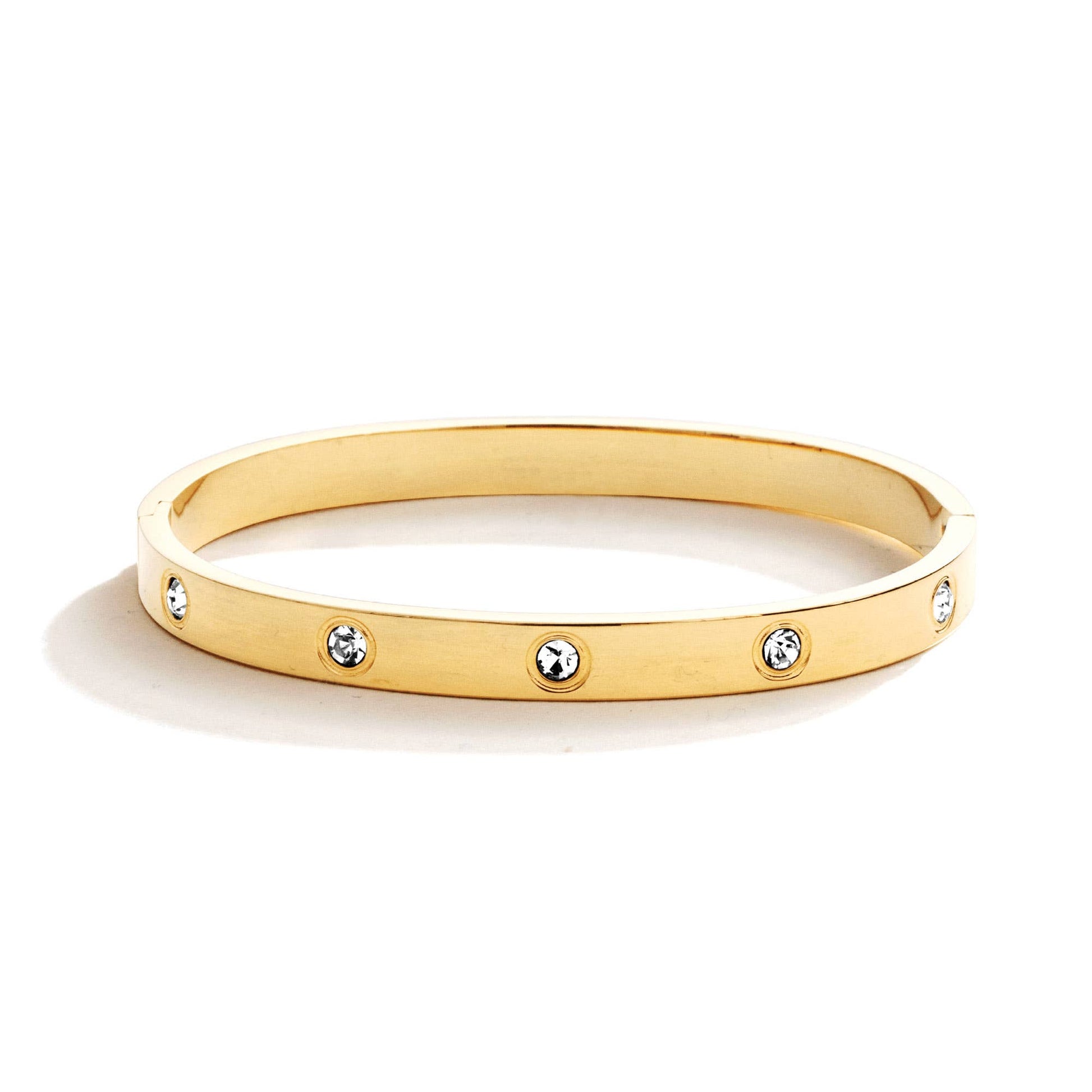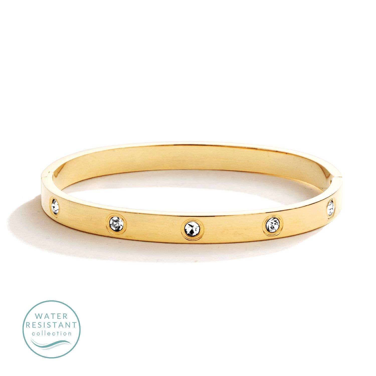 Hinged Stainless Steel Bangle for a luxurious gleam and a timeless look. Adorn yourself in elegance with this exquisite piece! Water Resistant Hinged Closure (apply light pressure to open & close)