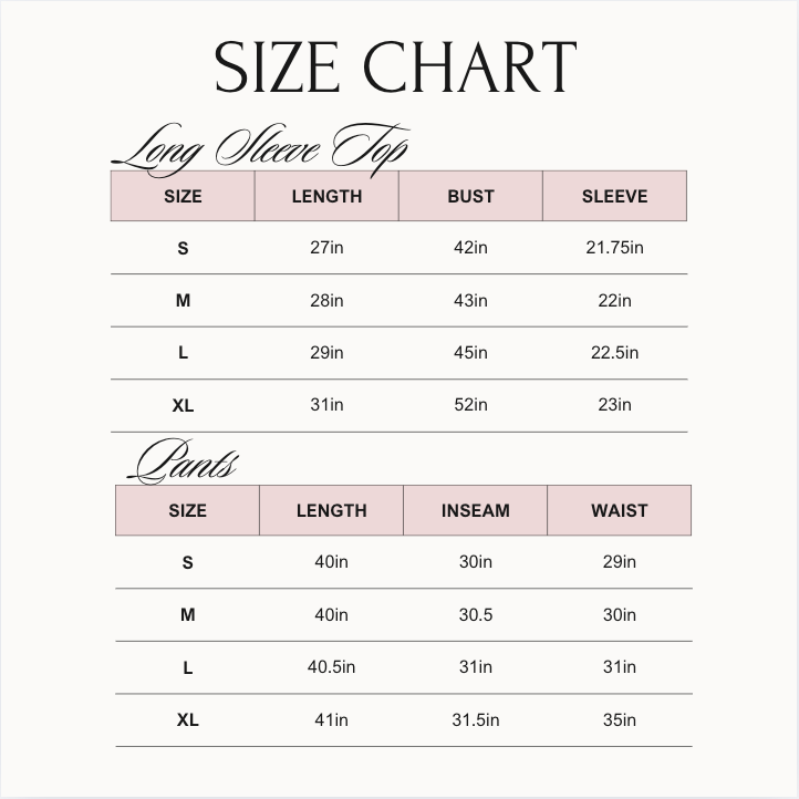Long sleeve sleep Top: Notched Collar, Front Button Closure, Long Sleeves Sleep Pants: Elastic Waistband with Drawstring Tie, Hip Pockets, + Relaxed Fit