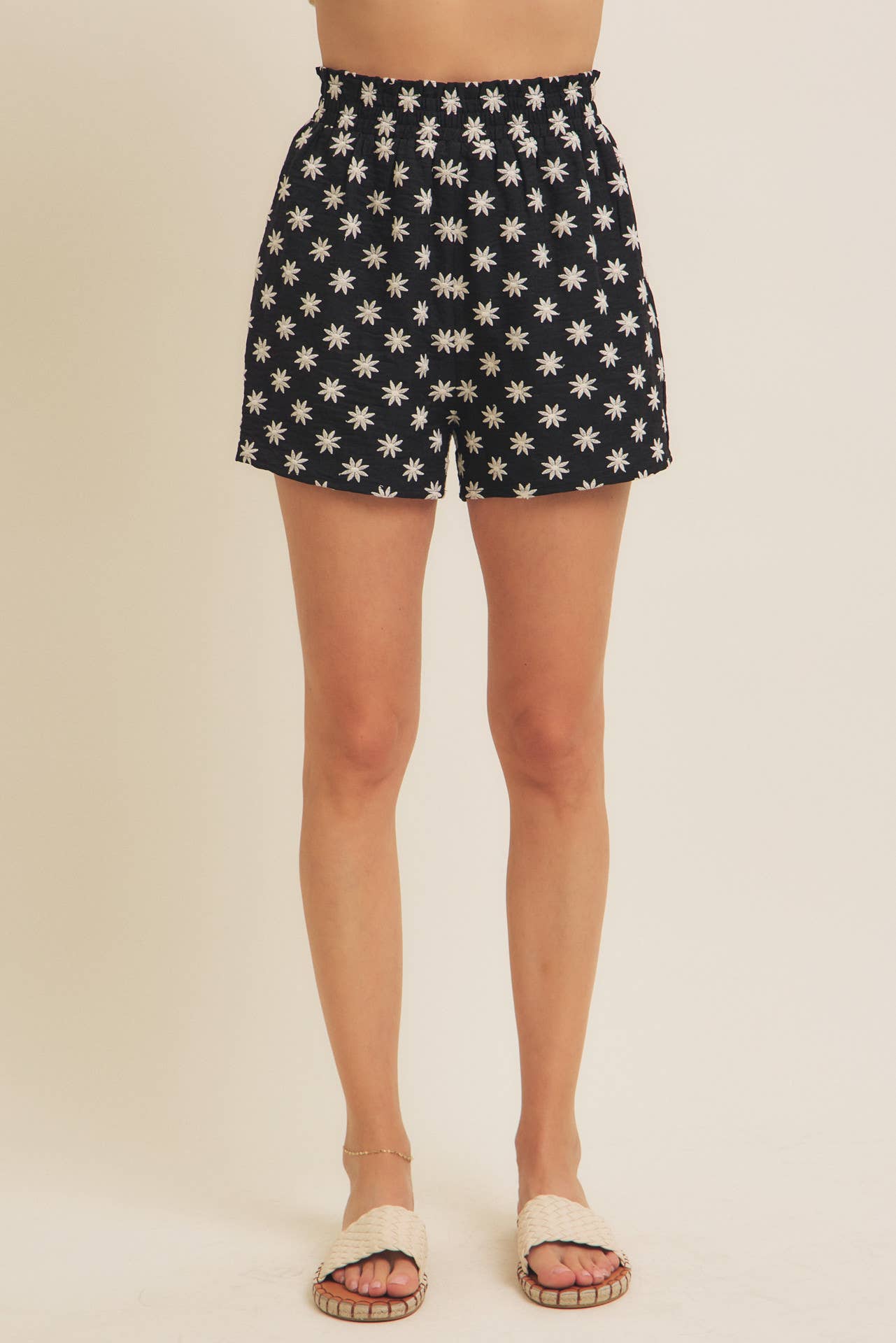 Embroidered - Easy to wear comfortable shorts - With pockets - Lined - Stretchy elastic waistband