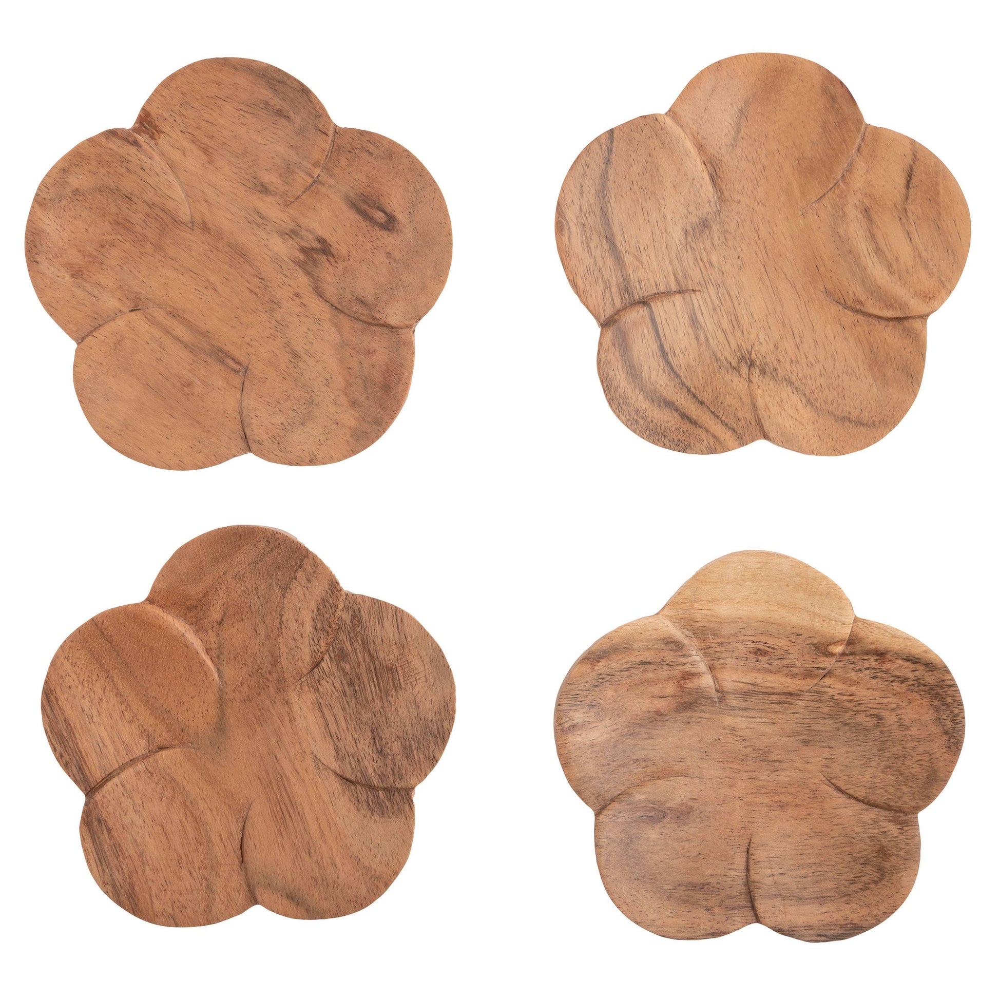 Protect your home surfaces with the delicate touch of our beautiful wood flower coasters. This set of four hand-crafted petals, is made from rich and natural mango wood, easily incorporated into any style of décor. Give them as a thoughtful housewarming gift or toss into a birthday gift basket for an easy addition.
