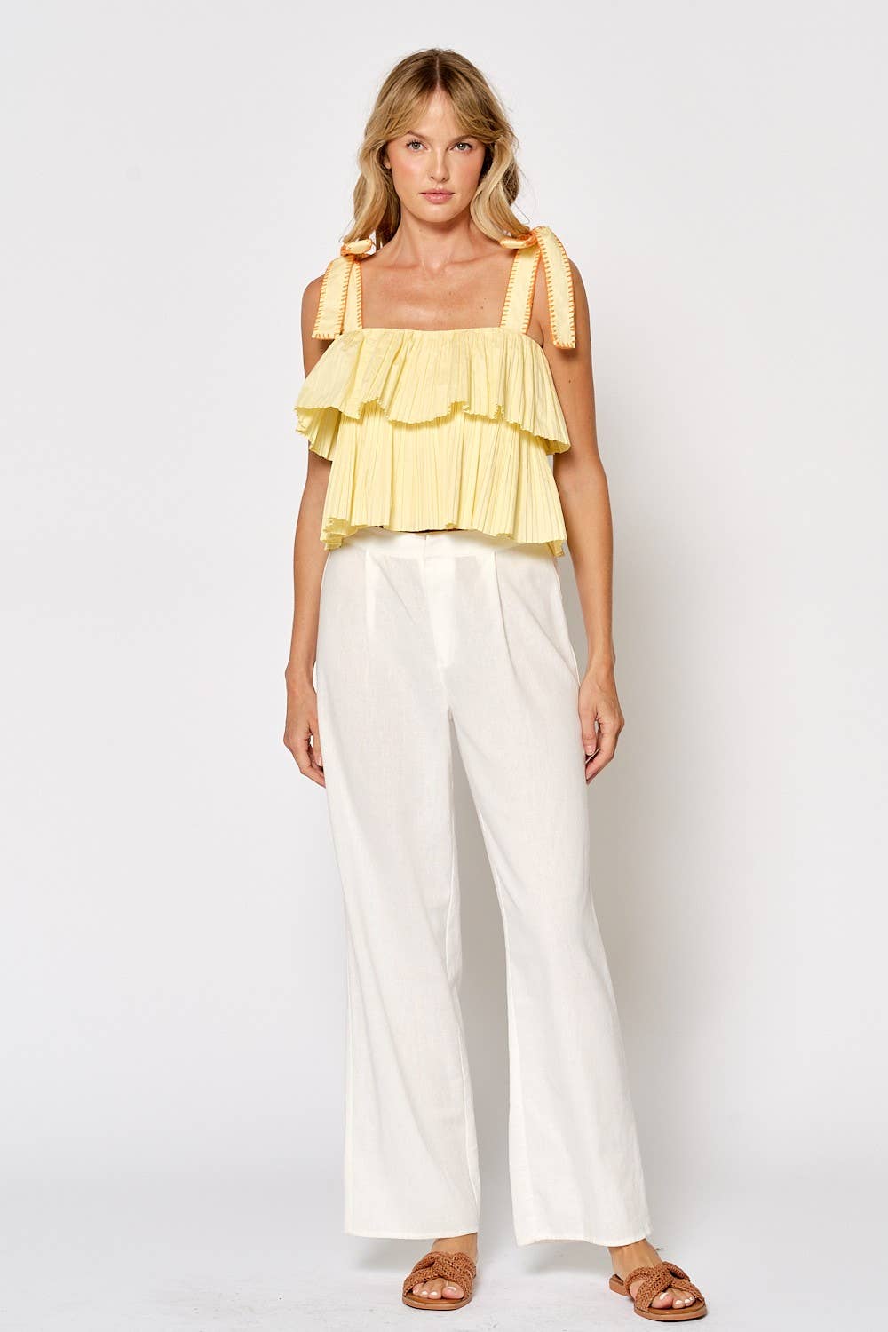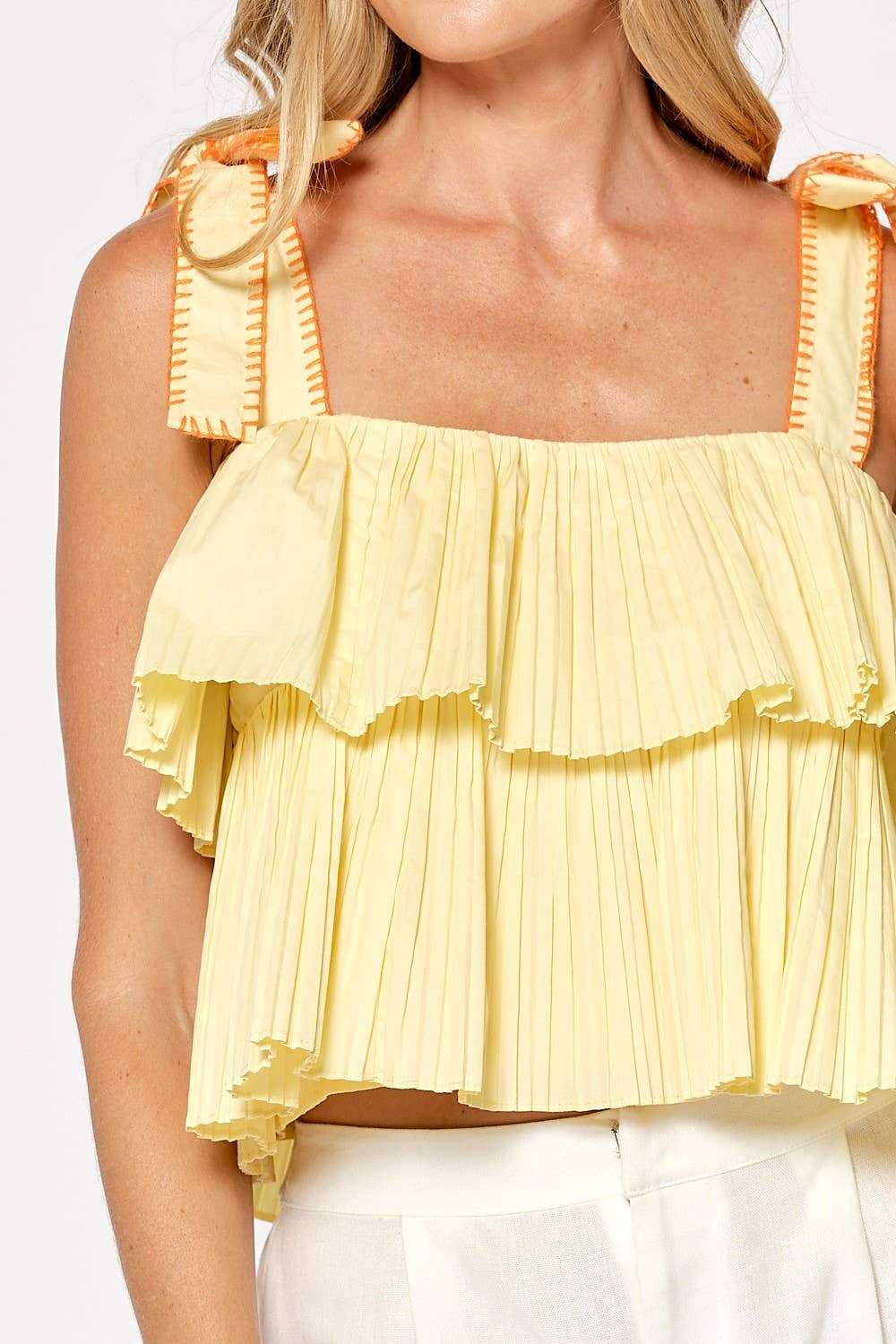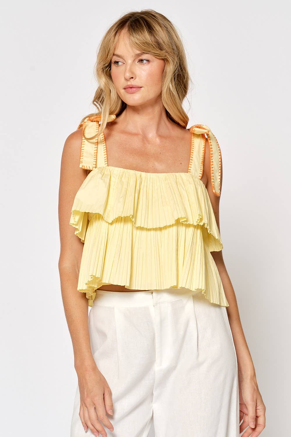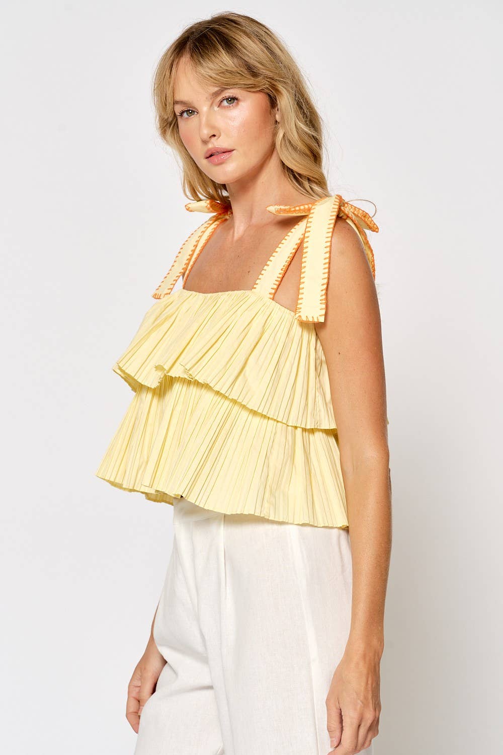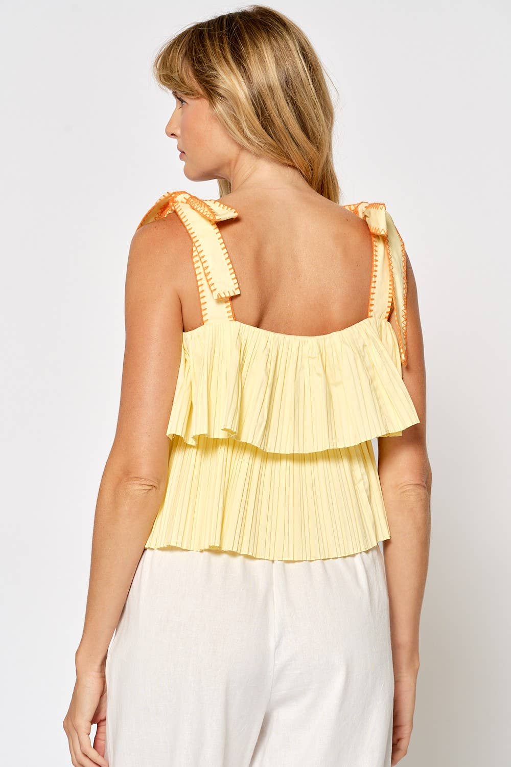 PLEATED RUFFLE TANK TOP W/ RIBBON TIE