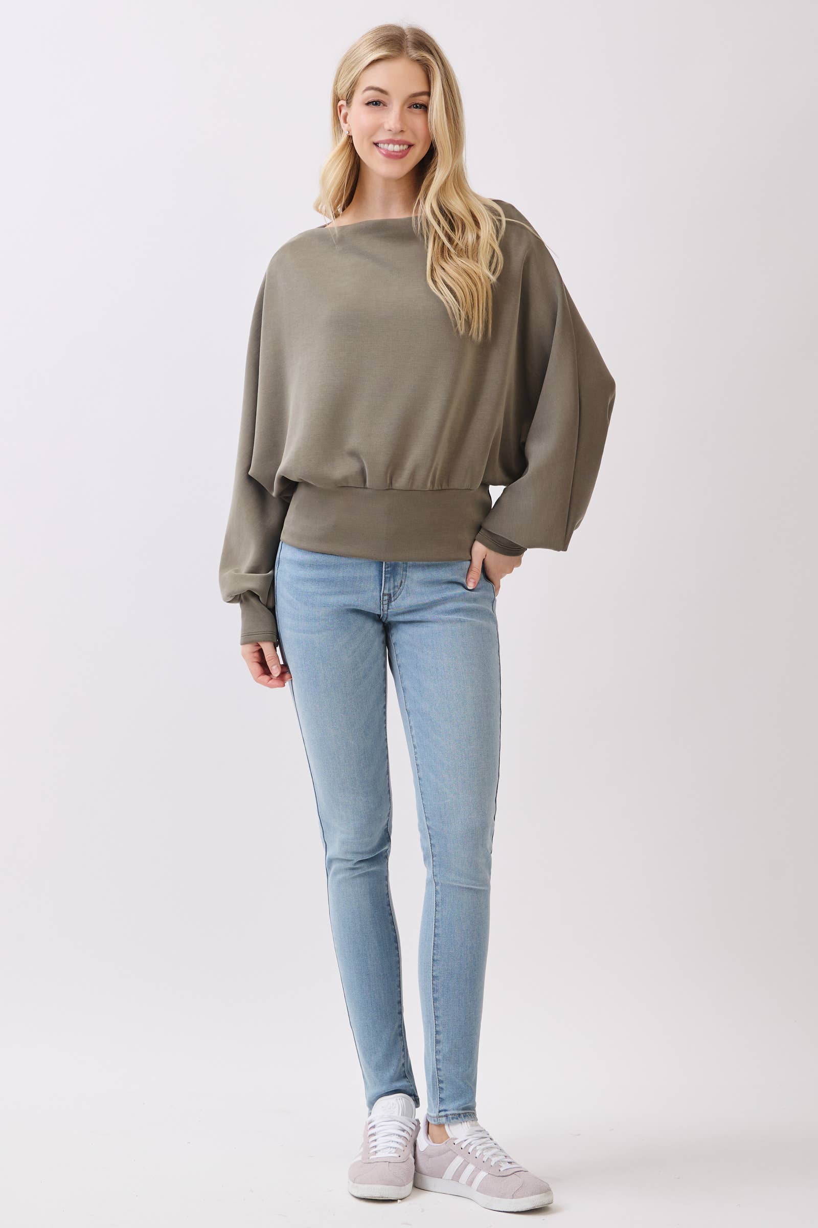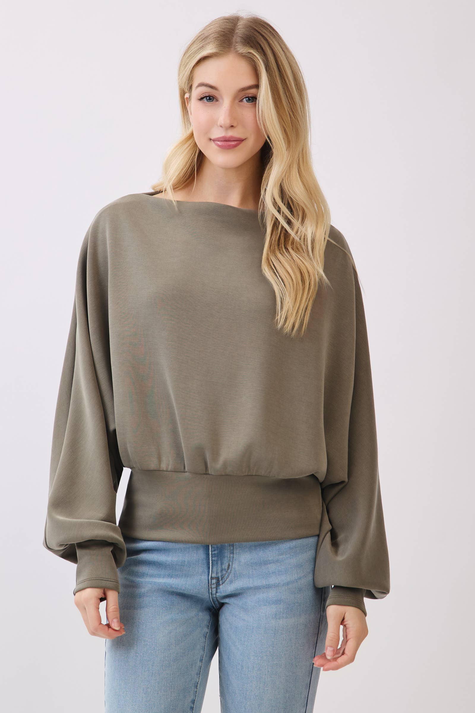 JERSEY BOAT NECK LONG SLEEVE WITH BAND DETAIL TOP