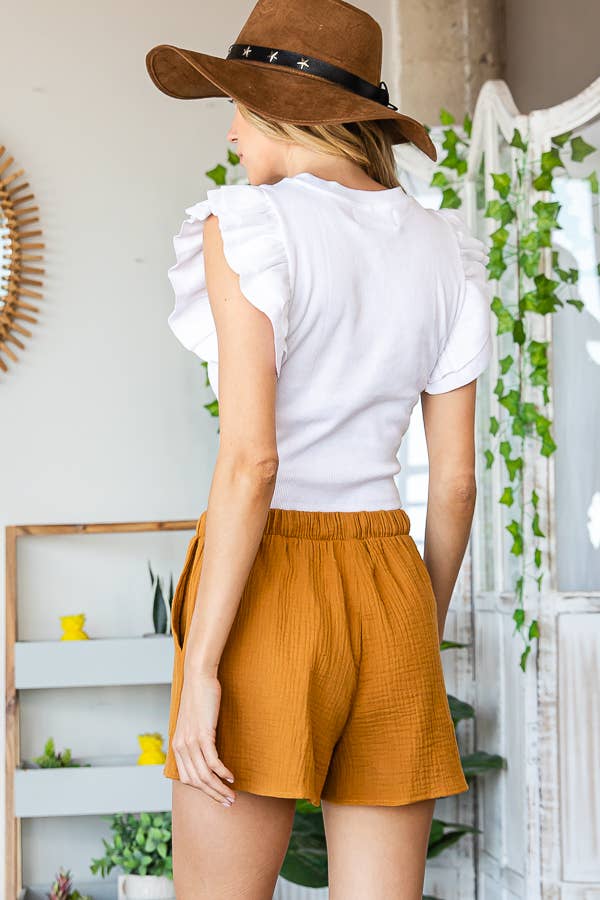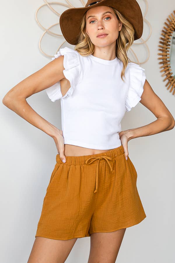 Solid Textured Shorts With Pocket - Elasticized waist - Lightweight woven fabric - Drawstring trim