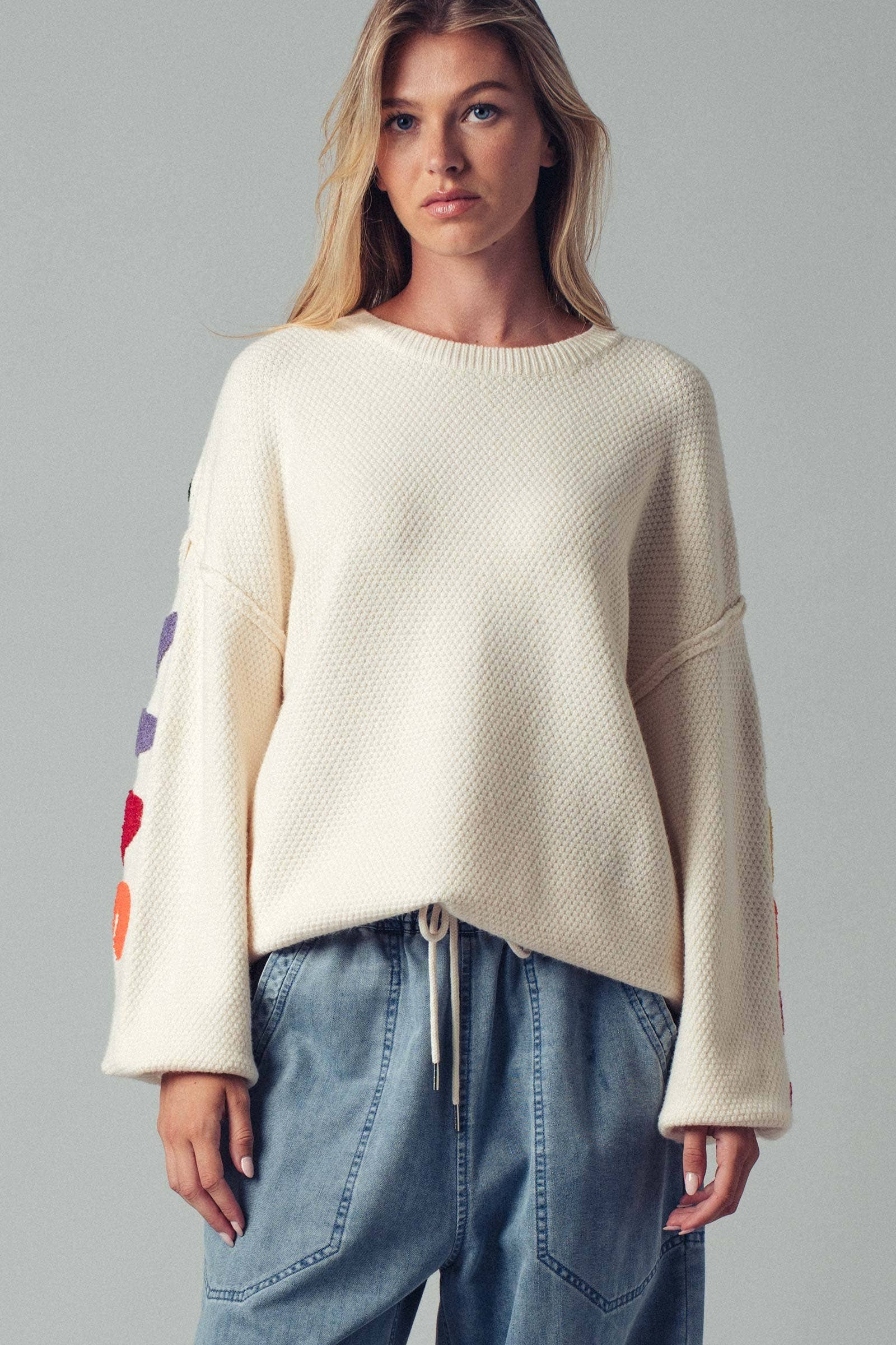 Celebrate the season in style with this cozy sweater featuring bold, colorful “MERRY CHRISTMAS” lettering across the back and sleeves. Designed with a relaxed silhouette, it’s the perfect festive layer for holiday gatherings and cozy winter days. Soft, textured knit for warmth and comfort