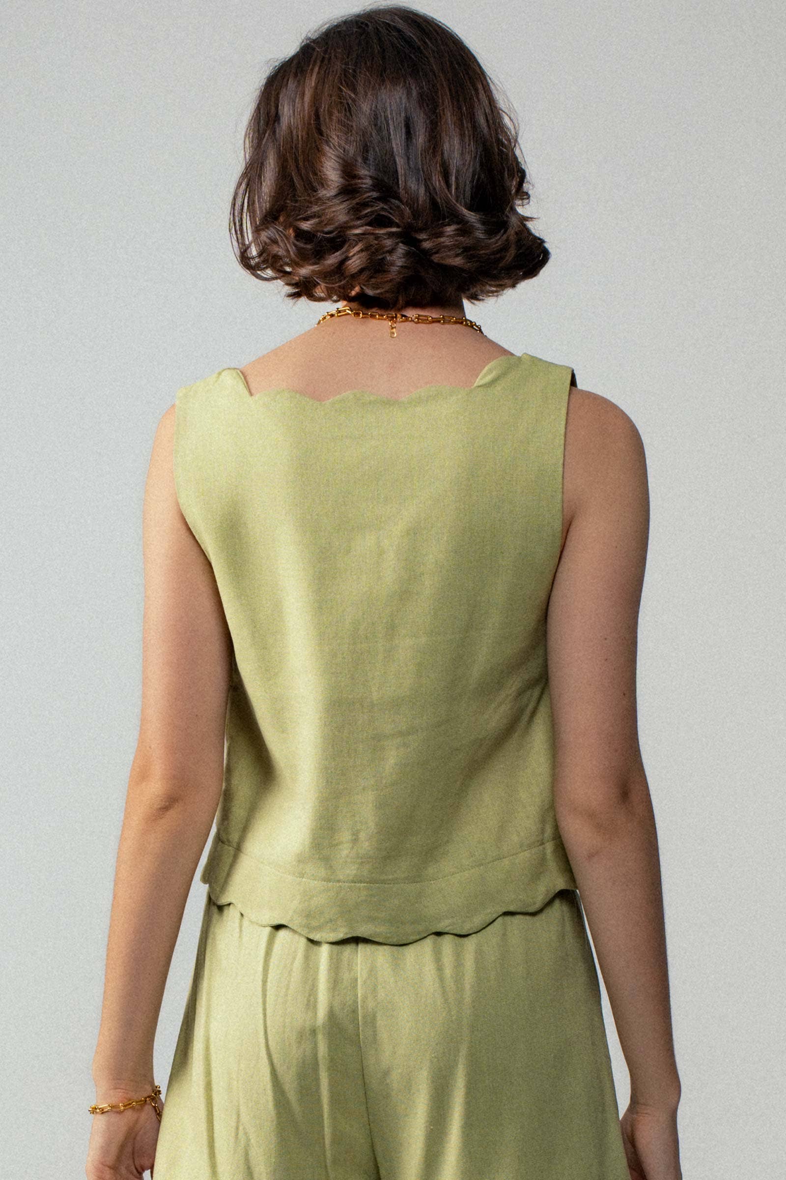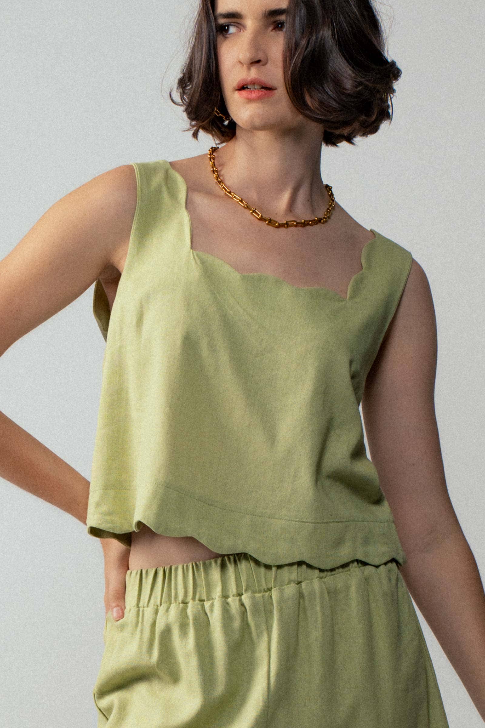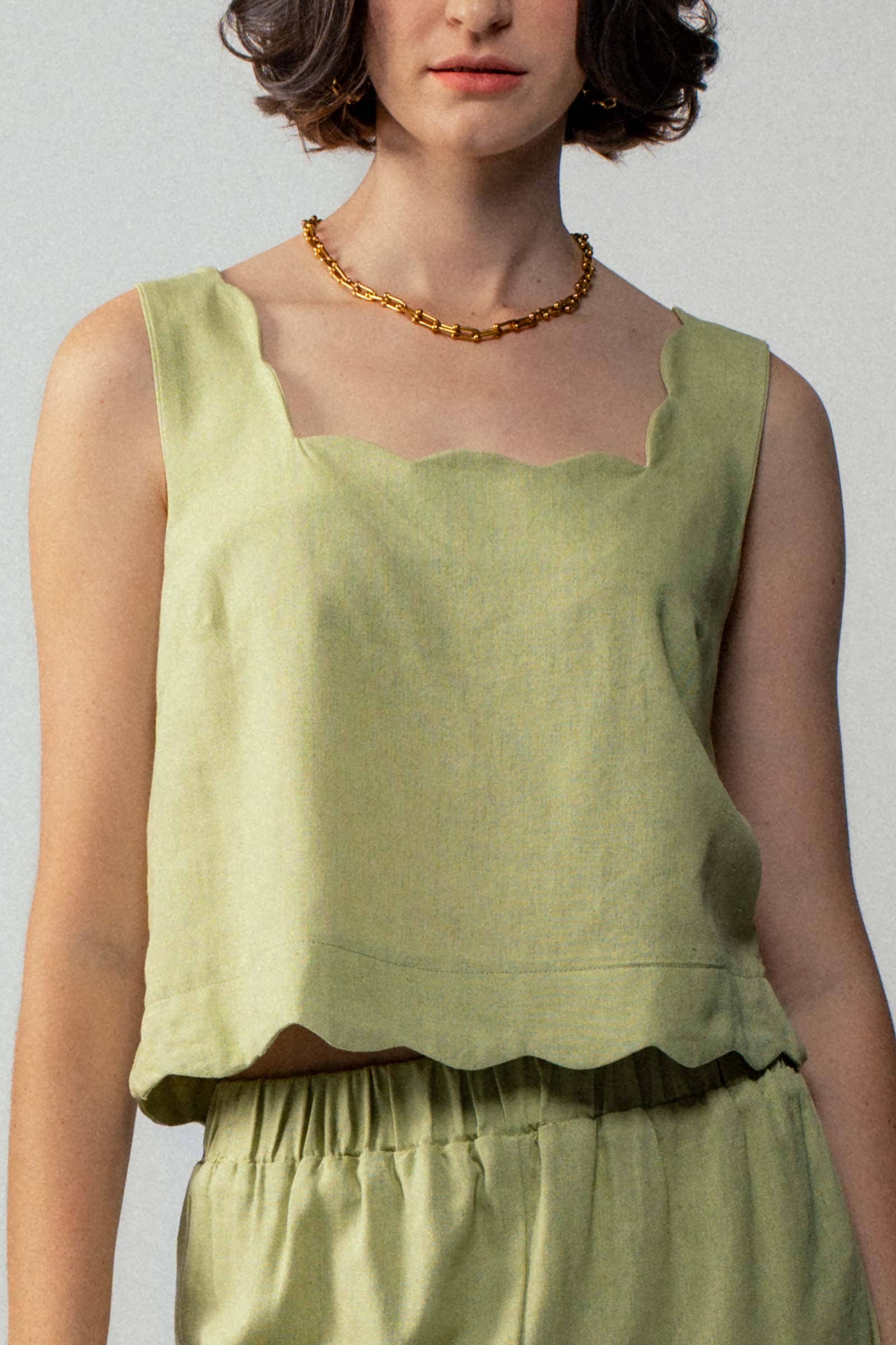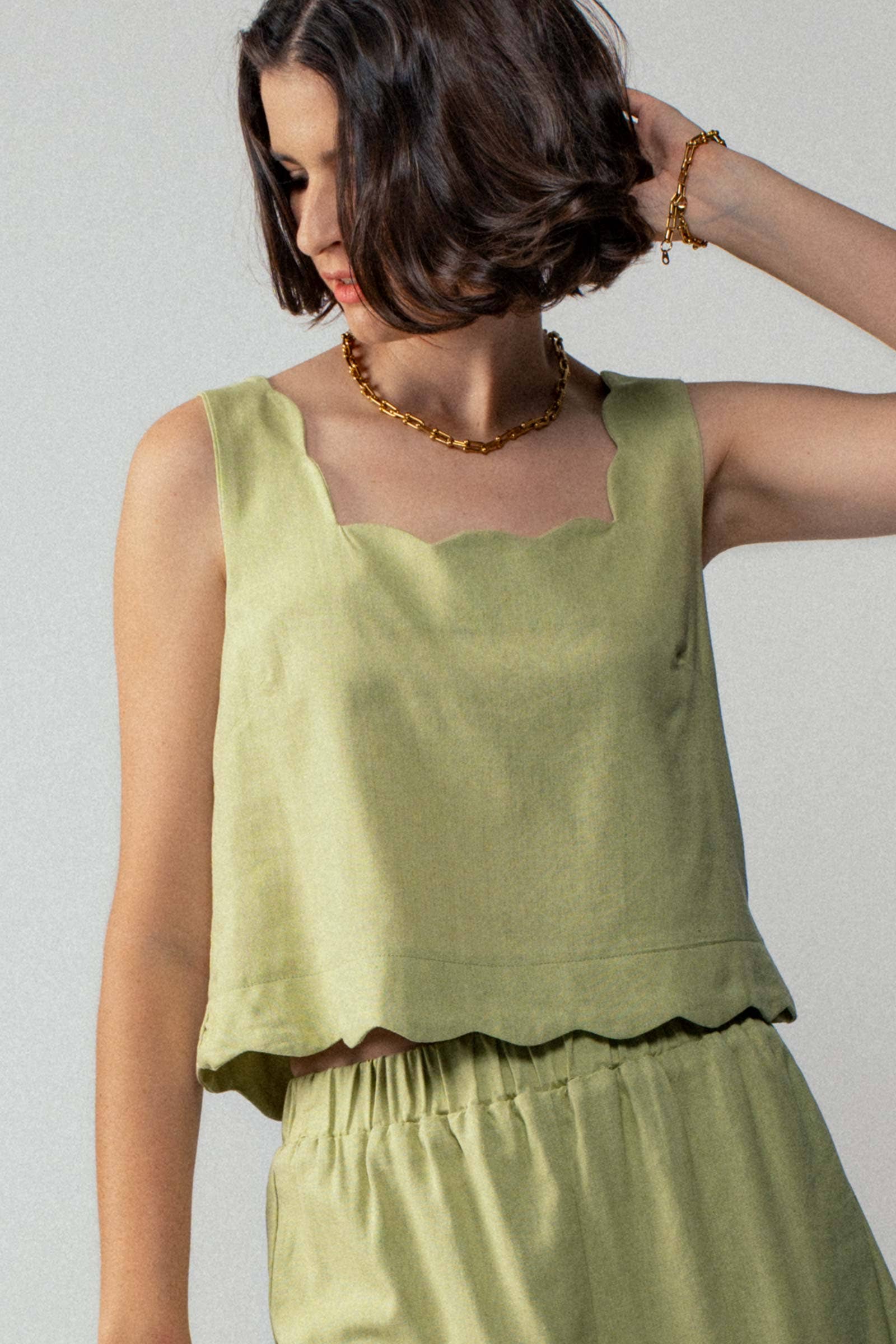 These playful yet sophisticated shorts feature charming scalloped hems and a comfortable elastic waistband, crafted from soft, airy linen-blend fabric.