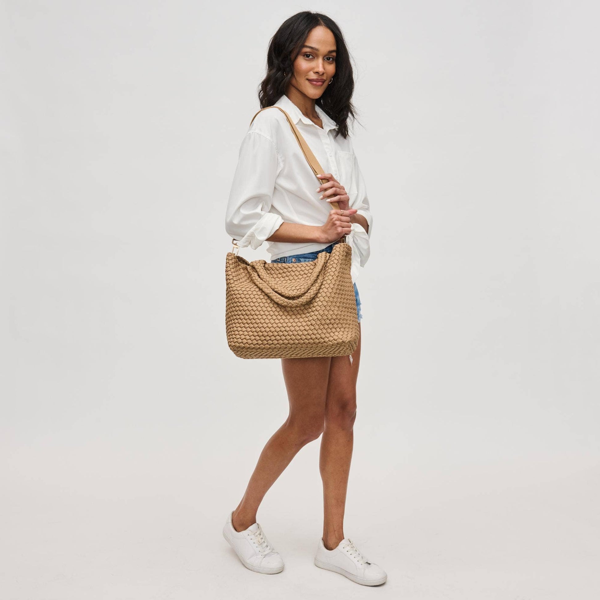 Elevate your style sustainably with the Sky's The Limit - Medium Tote. Perfect for work, travel, or everyday adventures, it offers ample space and includes a matching pouch to keep essentials organized. The lightweight yet durable construction ensures comfort, while its detachable strap allows for versatile wear as a crossbody or over-the-shoulder. This timeless tote is a practical, stylish choice for those seeking fashion-forward functionality and a commitment to sustainability. Make a statement and reduce your footprint with this chic, planet-friendly accessory.Â