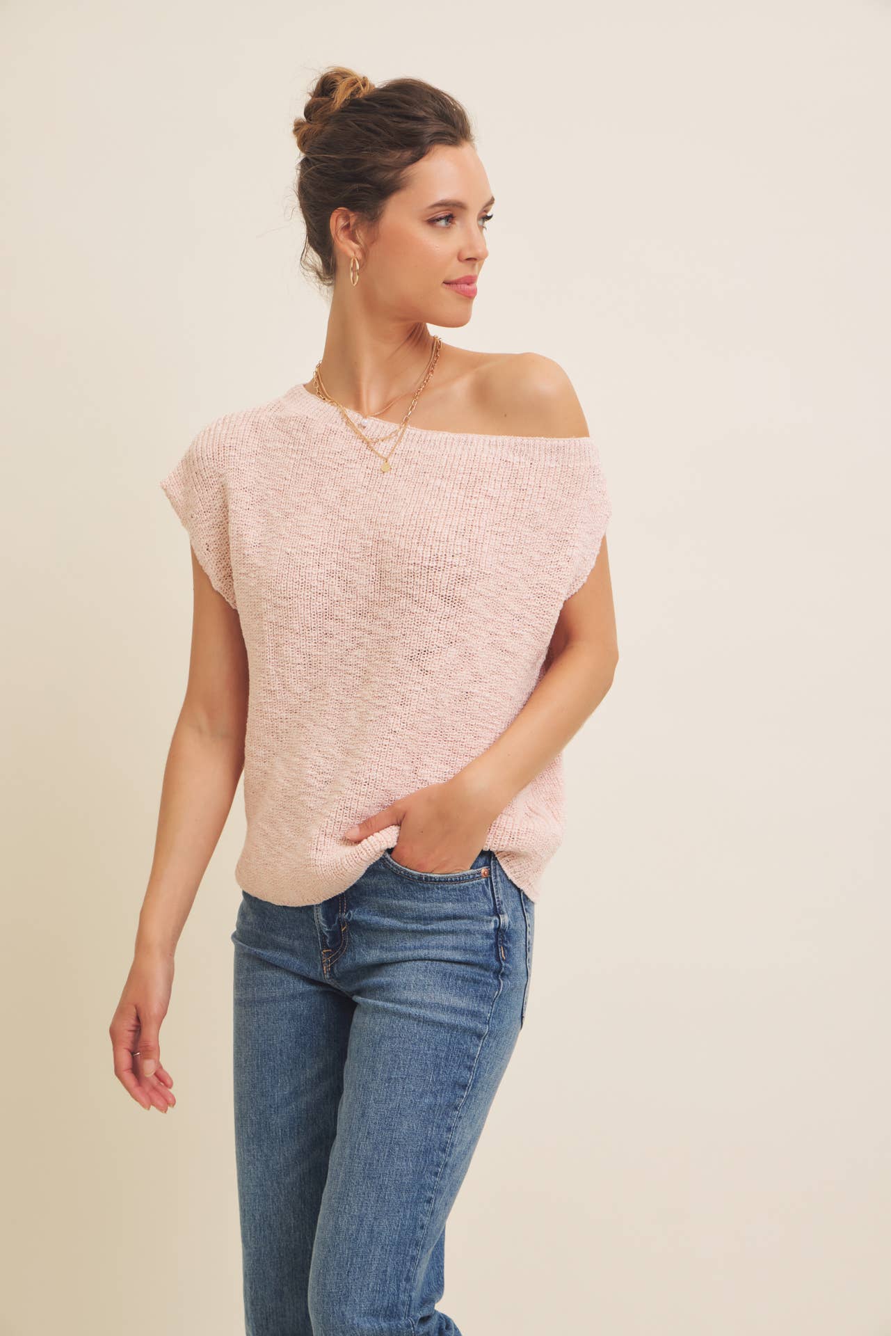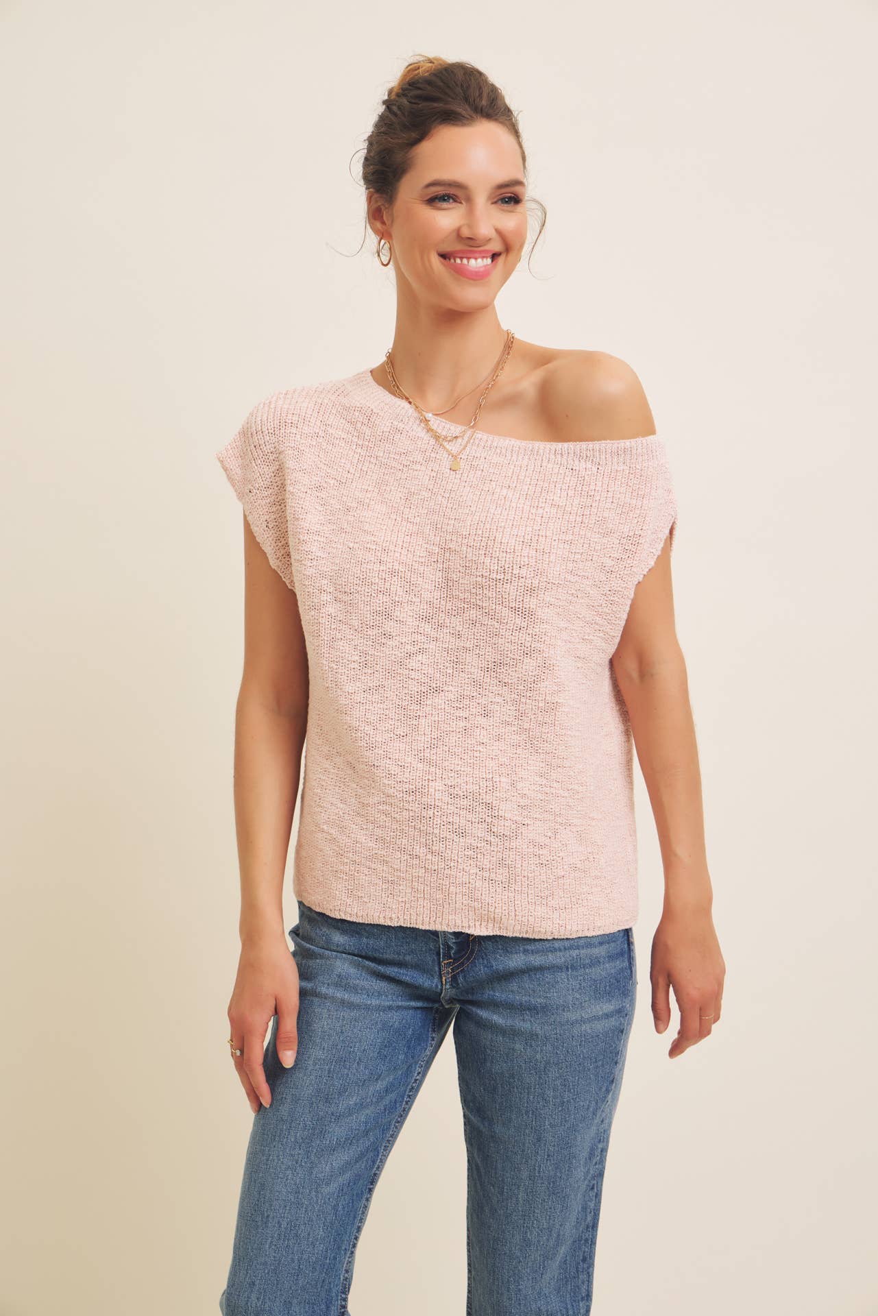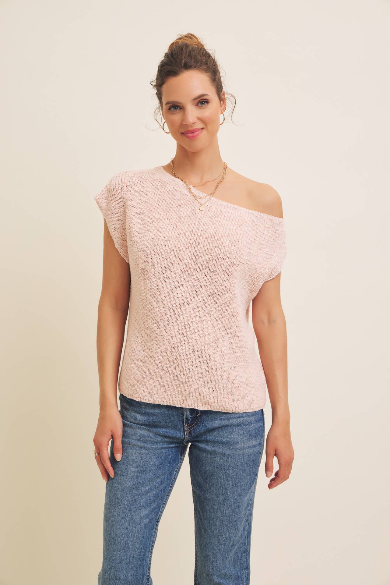 One-shoulder - textured - Lightweight sweater knit fabric: Model is 5'9.5" and wearing a size Small