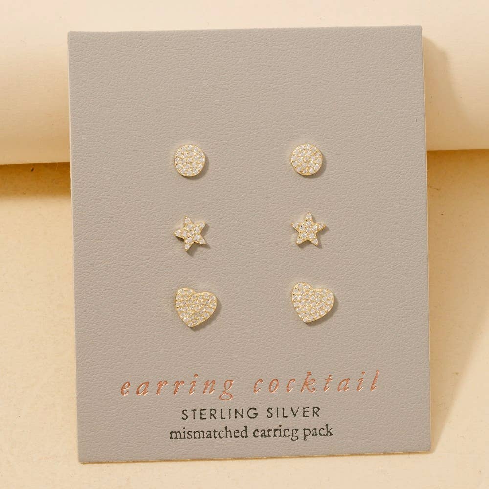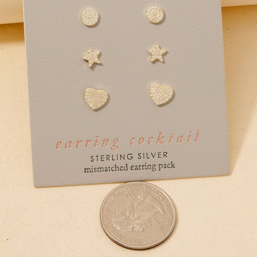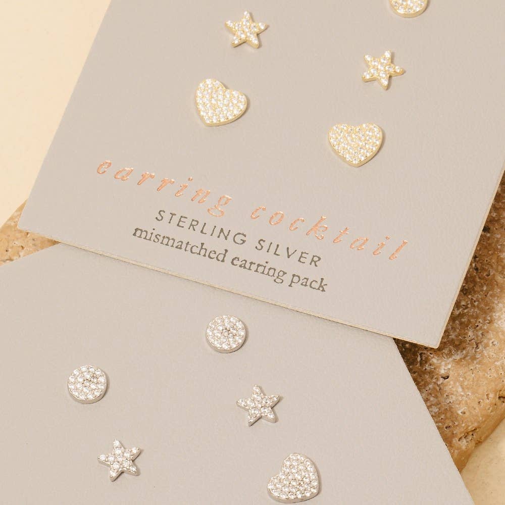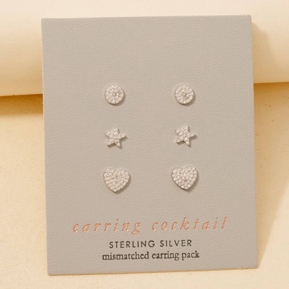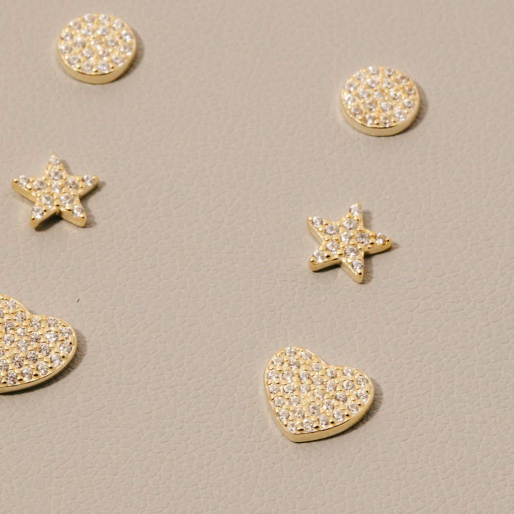 Sterling Silver Star Heart Disc Stud Earrings Set