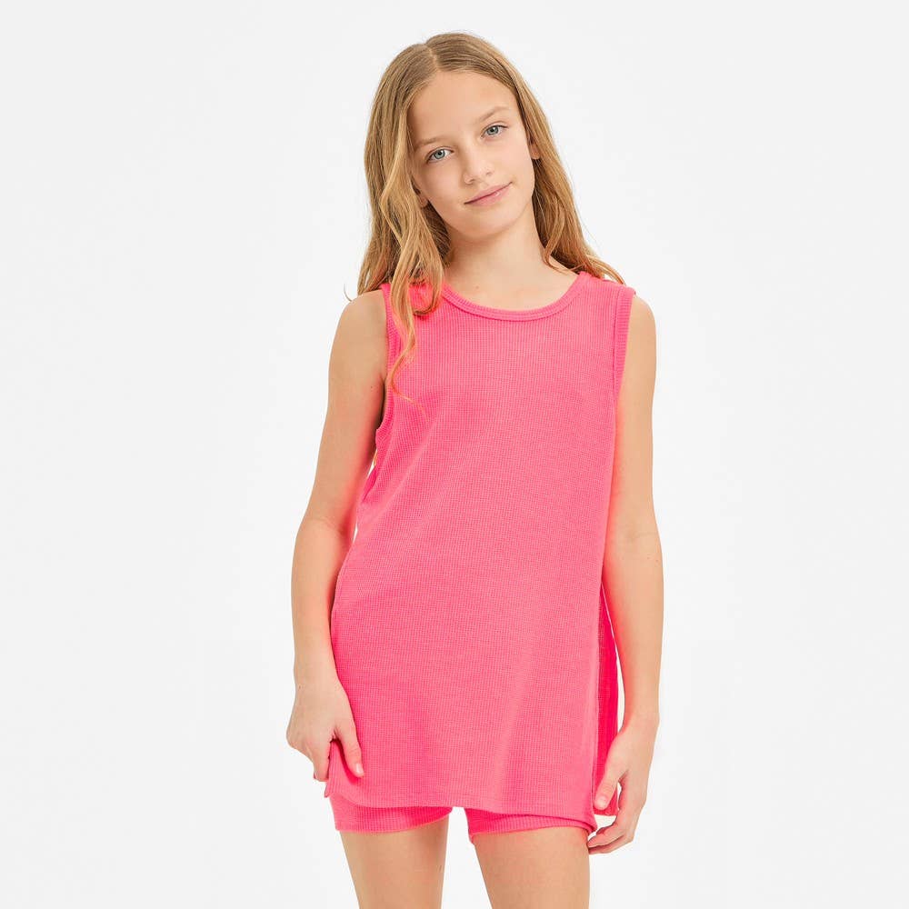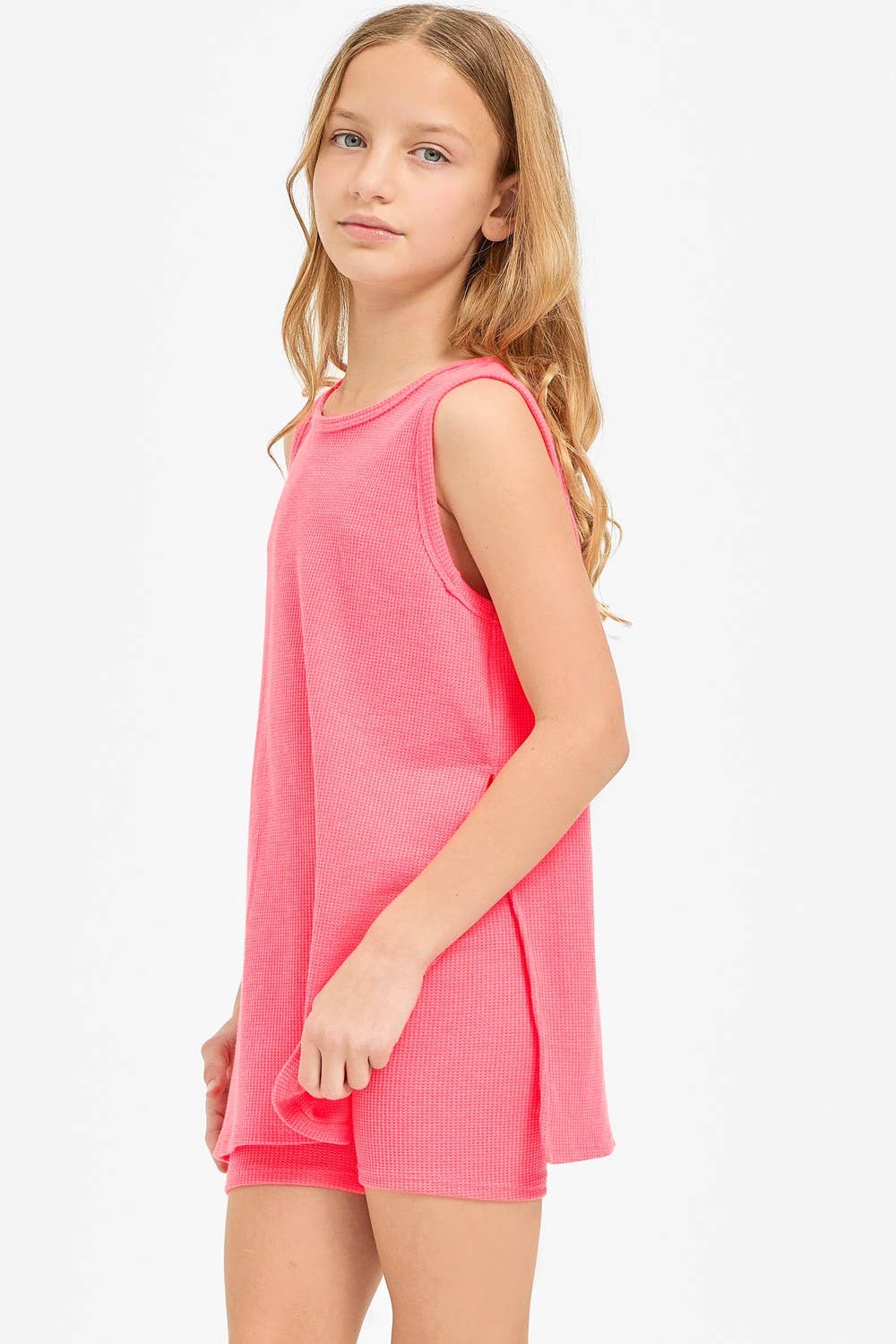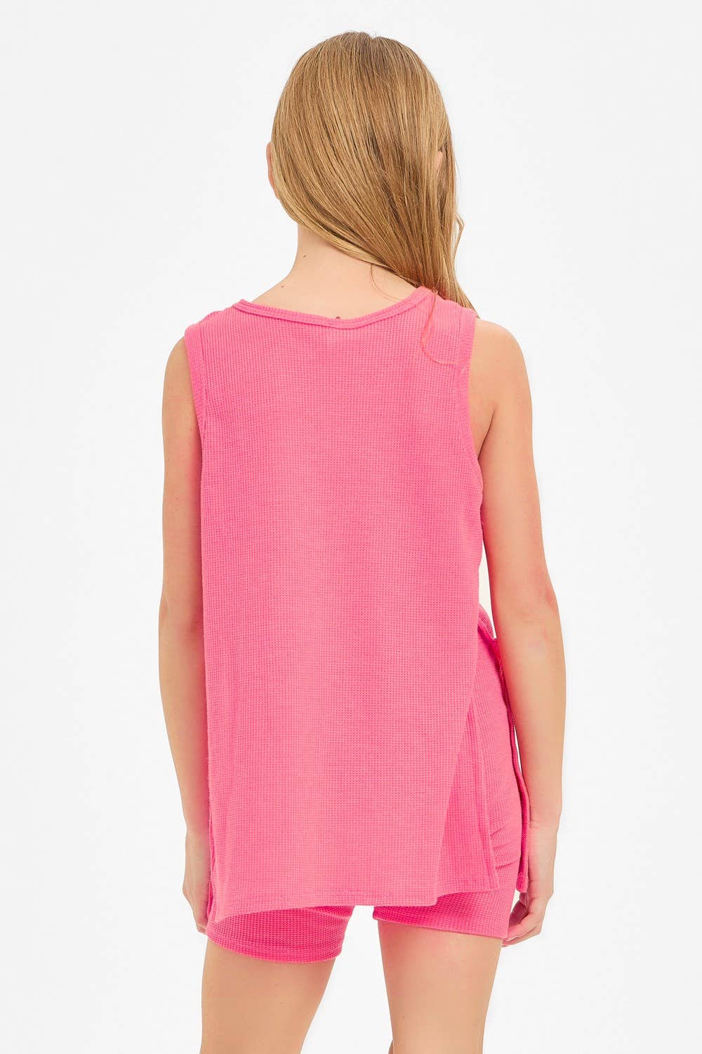 Waffle Knit Sleeveless Top and Biker Shorts Set